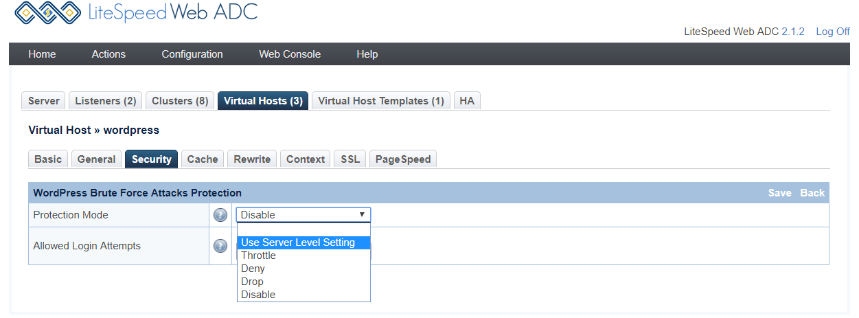 LiteSpeed Web ADC has a built-in WordPress brute force attack protection system. It will protect shared hosting WordPress environments from large-scale brute force attacks, which have the potential to bring down entire servers.
