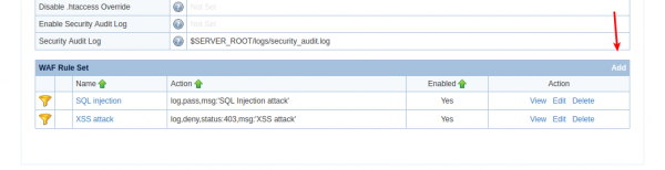 Click Add to edit the WAF Rule Set.