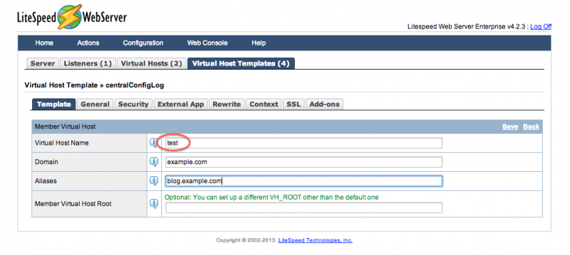 LiteSpeed Web Server comes with three virtual host templates for three common types of virtual hosts: